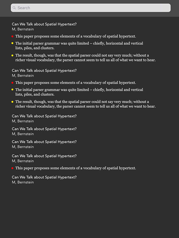 The basic premise of annotating PDFs in Author is that it would be quite useful to be able to highlight text in a PDF and then search for that text later, or simply see all the highlighted text in one go for each of your PDF documents. Surprisingly, this is not currently possible with any iOS PDF reader, hence the creation of this feature within Author.